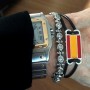 Pulsera con la Bandera de España, engarzada en 2 hilos de cordón de piel en color CHOCOLATE o CAMEL.