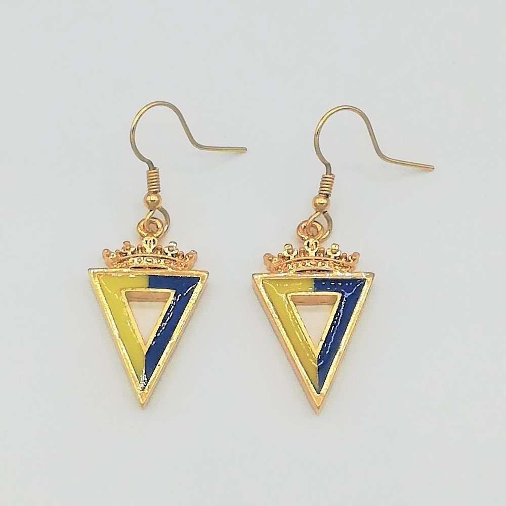 Pendientes con el escudo oficial del Cádiz bañado en Oro. Se trata de la versión del modelo colgante grande, con tamaño 20x15mm y cierre de gancho.