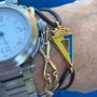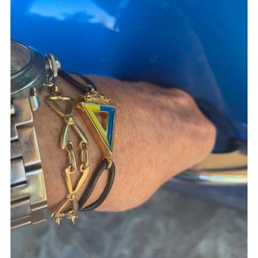Pulsera de piel con escudo esmaltado y baño en Oro