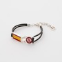 Pulsera con el Águila de San Juan y la Bandera de España. Fabricado en zamak, bañada en plata de ley y esmaltado. Engarzada en doble cordón de piel.